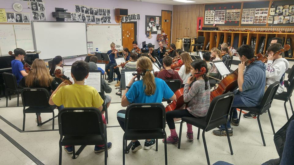The Junior Orchestra performs at the Annual Ensemble Concert and in a local Community Tour, playing at schools or retirement homes in Ottawa.